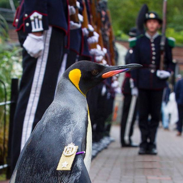Nils Olav, hiệp sĩ chim cánh cụt nổi tiếng ở vườn thú Edinburgh, Scotland, được phong thêm chức chuẩn tướng trong Đội cận vệ Hoàng gia Na Uy.
