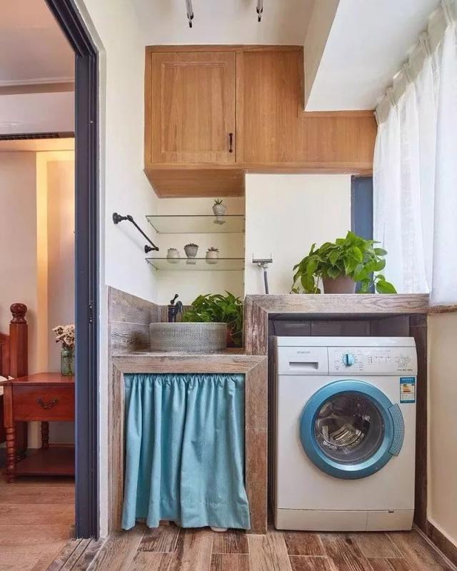Nếu còn không gian, bạn có thể bố trí thêm bồn rửa mặt, rửa tay bên cạnh, hoặc một chiếc tủ nhỏ để lưu trữ xà phòng giặt, nước xả. Ngoài ra, bạn cũng nên tận dụng không gian bên trên có thêm không gian lưu trữ ngay chính tại ban công. Kiểu 'cất' máy giặt vào hệ kệ còn hạn chế nắng mưa tác động vào máy nên sẽ giúp nâng cao tuổi thọ của máy hơn đó.