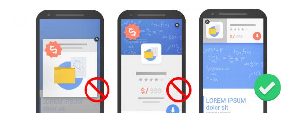 Google thông báo rằng họ sẽ giảm thứ hạng tìm kiếm của những trang web 'khiến người dùng khó tiếp cận với nội dung khi đi từ công cụ tìm kiếm vào', và hãng lấy ví dụ cụ thể là các quảng cáo dạng pop-up. Những mẫu quảng cáo thuộc vào dạng này sẽ che mất nội dung chính hoặc bung ra toàn màn hình khiến người dùng phải đóng chúng trước khi đọc được tới thứ mà họ quan tâm, điều đó khiến trải nghiệm bị giảm đi đáng kể. Nếu quảng cáo trên website nào có kích thước vừa đủ và hợp lý thì sẽ không bị giảm xếp hạng. Tương tự, nếu một thông báo xuất hiện toàn màn hình nhưng là để thông báo về việc web có dùng cookie hoặc để xác nhận tuổi trước khi truy cập thì cũng không sao. Thay đổi nói trên có hiệu lực bắt đầu từ ngày 10 tháng 1 năm 2017. Google nói thêm rằng các trang web có chất lượng tốt nhiều khả năng vẫn sẽ được xếp hạng cao sau thời điểm nói trên, tuy nhiên hãng vẫn khuyên các nhà thiết kế web bỏ những pop-up dạng này đi.