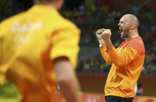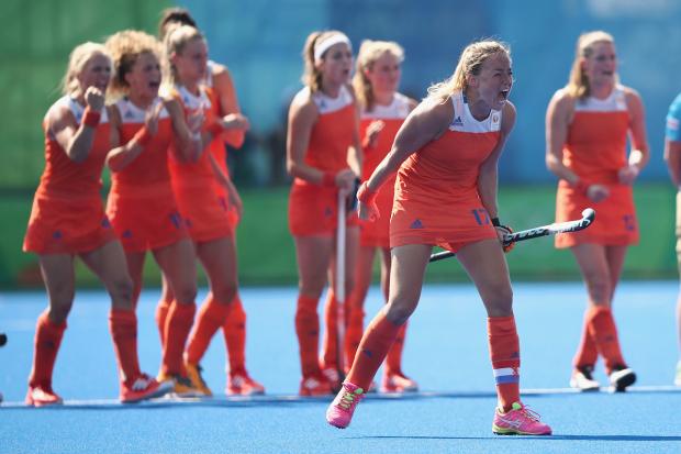 10. Cảm xúc vui mừng của vận động viên Maartje Paumen Hà Lan sau khi thực hiện thành công lượt sút luân lưu của mình trong trận đấu bán kết nữ giữa Hà Lan và Đức vào ngày thi đấu thứ 12, Olympic Rio 2016.