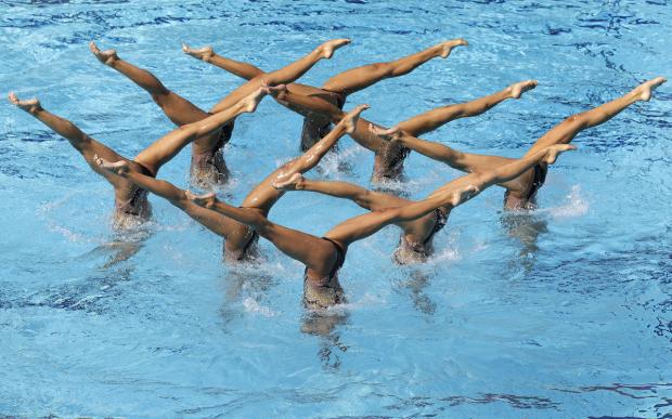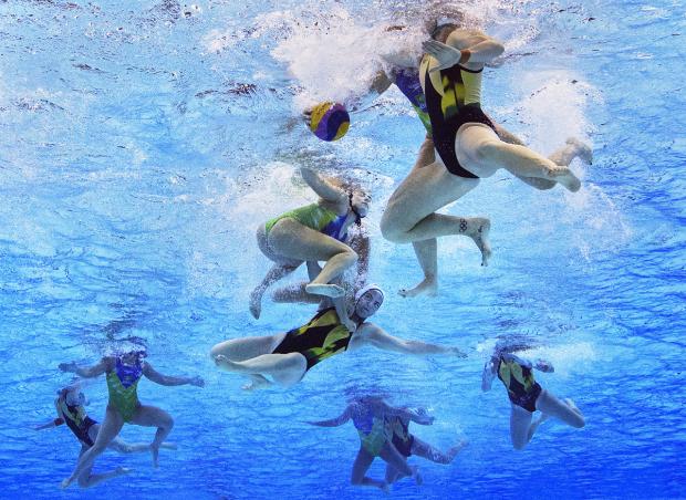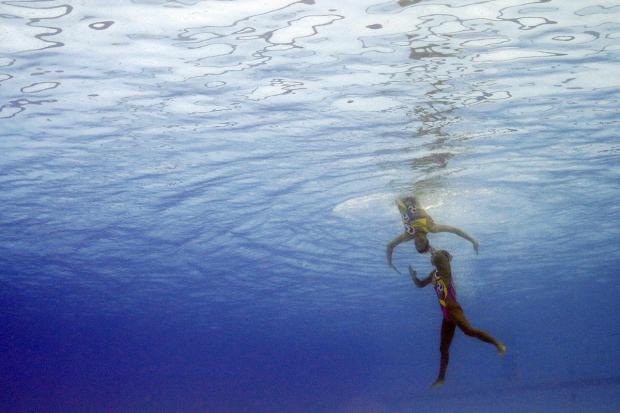 17. Hai Vận động viên giành huy chương đồng Yukiko Inui và Risako Mitsui của Nhật Bản thi đấu trong vòng chung kết nội dung bơi tự do, bộ môn bơi nghệ thuật.