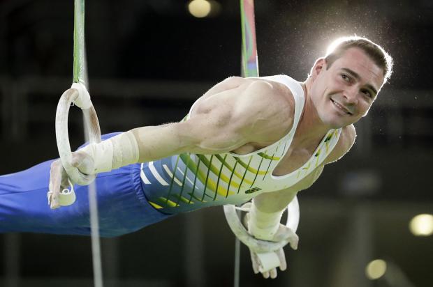 1. Vận động viên Arthur Zanetti của Brazil thể hiện một động tác thăng bằng trên vòng treo trong gala biểu diễn bộ môn thể dục dụng cụ tại Thế vận hội mùa hè 2016 mùa hè ở Rio de Janeiro vào ngày 17 Tháng Tám 2016.