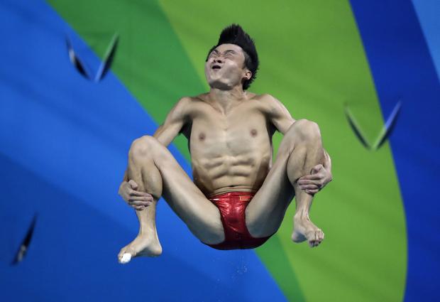 22. Hình ảnh thi đấu của Vận động viên Cao Yuan, Trung Quốc trong nội dung nhảy cầu 3m nam, vòng chung kết tại trung tâm thể thao dưới nước Maria Lenk, ngày 16 Tháng Tám 2016 .