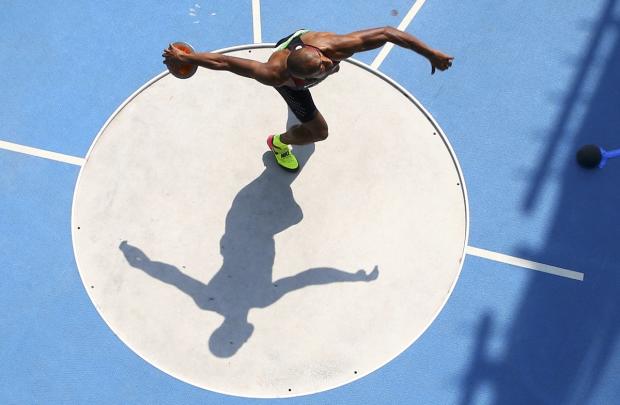 9. Khoảnh khắc vận động việc O'dayne Richards Jamaica ném tạ trong vòng thi đấu phân loại của nội dung ném tạ nam, ngày 18 tháng 8 năm 2016 .
