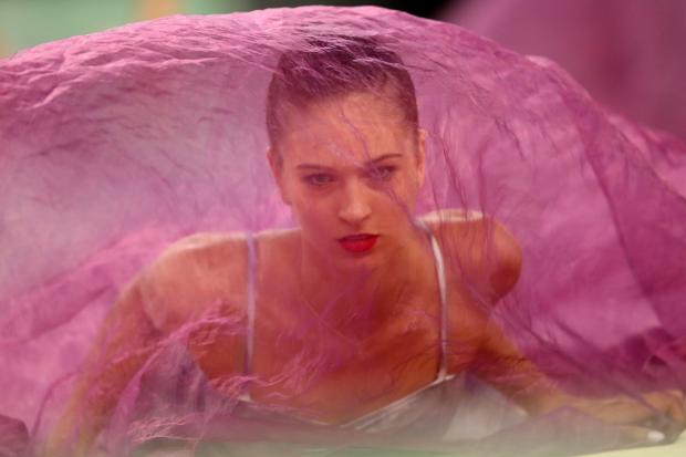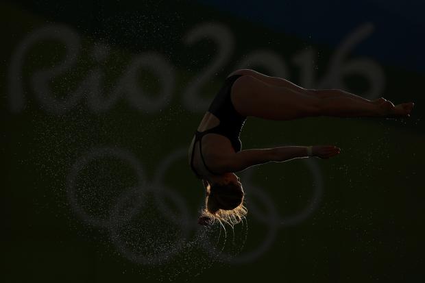31. Hình ảnh lộn ngược của vận động viên Ganna Krasnoshlyk, Ukraine khi đang thi đấu nội dung 10m ván cứng, bộ môn nhảy cầu, vòng sơ bộ, ngày thi đấu thứ 12 Olympic Rio 2016