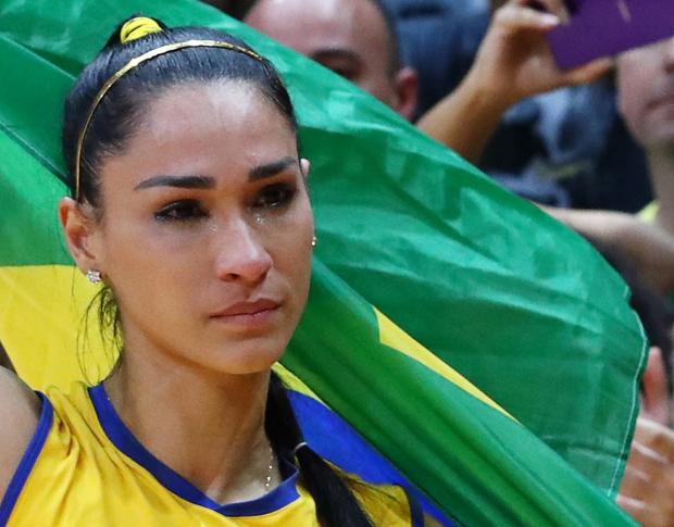 33. Vẻ mặt buồn bã của vận động viên Jaqueline de Carvalho Endres, Brazil sau khi để thua trận đấu tứ kết môn bóng chuyền nữ.