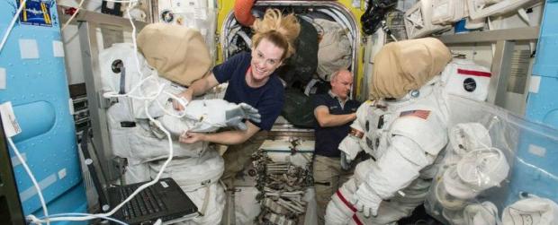 Các phi hành gia kiểm tra thiết bị phục vụ công việc trên trạm ISS. (Ảnh: NASA).