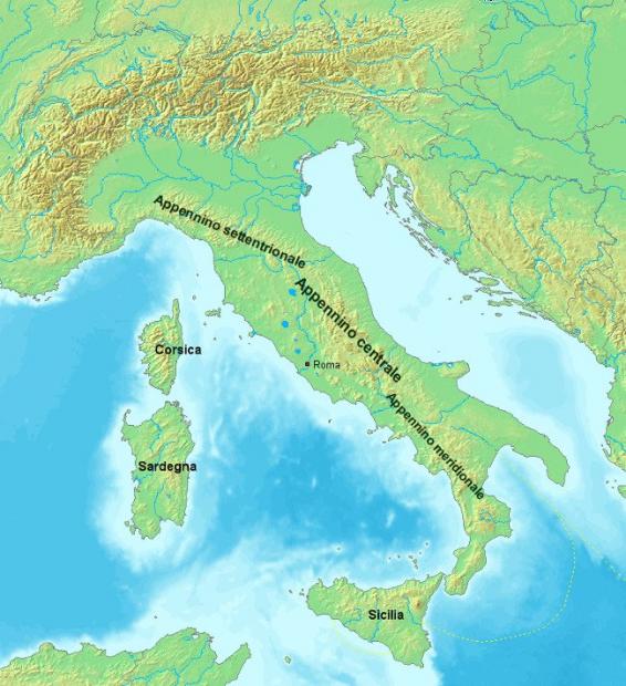 Dãy núi Apennine chạy dọc đất nước Italy. (Ảnh: Wikipedia).