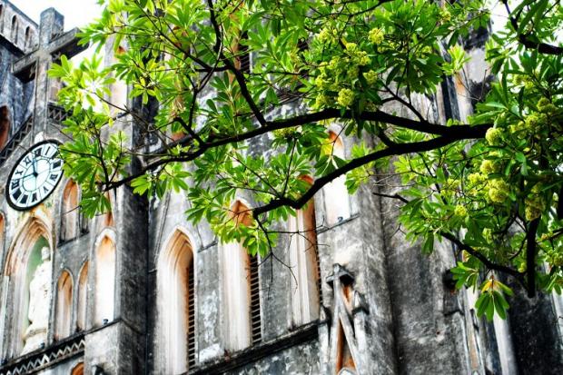 Một cây hoa sữa bên cạnh nhà thờ Lớn Hà Nội.