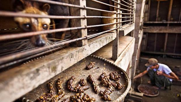 Những con chồn bị nhốt trong cũi, chịu đau đớn do lưới mắt cáo cứa vào chân và phải ăn quả cà phê liên tục để sản xuất hạt cà phê hảo hạng.