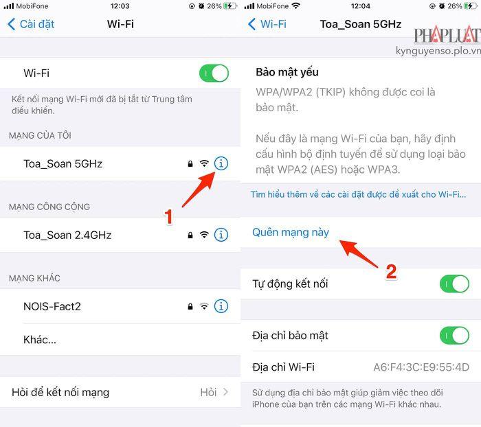 Cách quên mạng trên iPhone. Ảnh: MINH HOÀNG