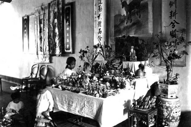 Một đại gia đình tề tựu đông đủ bên mâm cỗ Trung Thu (đầu thế kỷ 20).