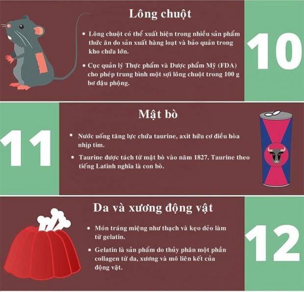 Những món ăn quen thuộc hàng ngày của chúng ta có thể chứa nhiều loại nguyên liệu kỳ lạ như tóc người, hắc ín hay lông chuột.