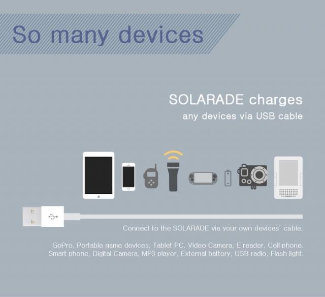Solarade phù hợp với rất nhiều loại thiết bị do sự phổ biến của cổng kết nối USB.