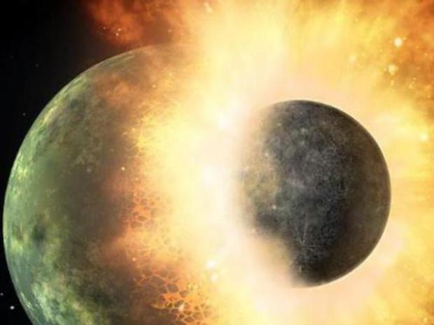 Các nhà khoa học đưa ra một giả thuyết rằng, Mặt Trăng ngày nay được hình thành từ sau một vụ va chạm giữa Trái Đất và một hành tinh có kích thước cỡ sao Hỏa cách đây khoảng 4 tỉ năm, khoảng 100 triệu năm sau khi hệ Mặt Trời được hình thành.