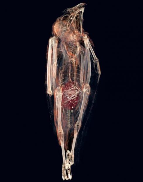 Hình ảnh chụp cắt lớp bên trong xác ướp con chim cắt cổ đại. (Ảnh: South African Mummy Project Team).