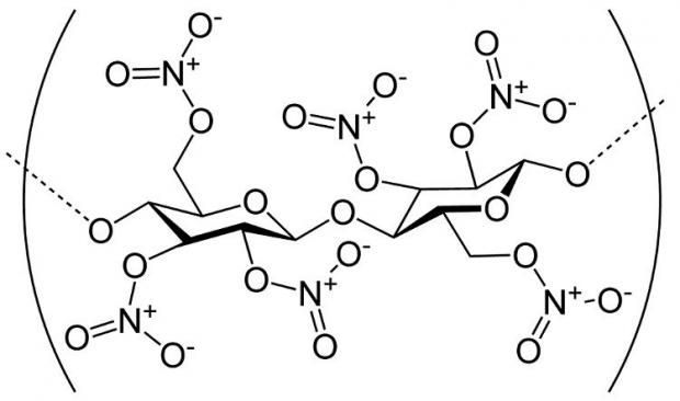 Cấu tạo hóa học của nitrocellulose.