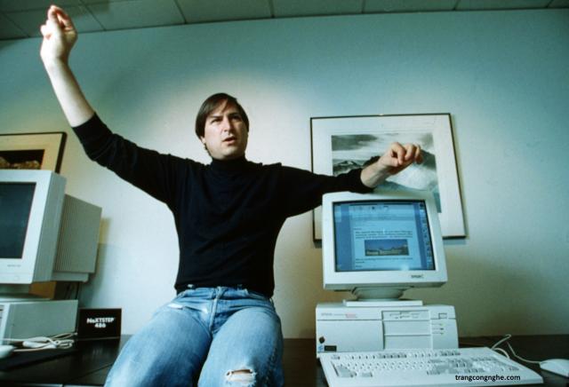 8. Sau mối bất hòa với Sculley, Jobs thành lập Next Computer. Trong bức ảnh được chụp năm 1993 này, ông đang được phỏng vấn trong trụ sở công ty tại Redwood City, Calif. (Ảnh Krist MacDonald/AP)