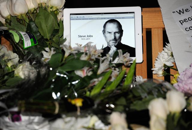 33. Ngày 5/10/2011, Steve Jobs qua đời. Trên toàn thế giới, các lễ tưởng nhiệm giống như trong bức ảnh này được làm bởi người tiêu dùng thể hiện tình cảm giành cho một trong những nhà cải tiến vĩ đại nhất của thời đại. (Kevork Djansezian/Getty Images)