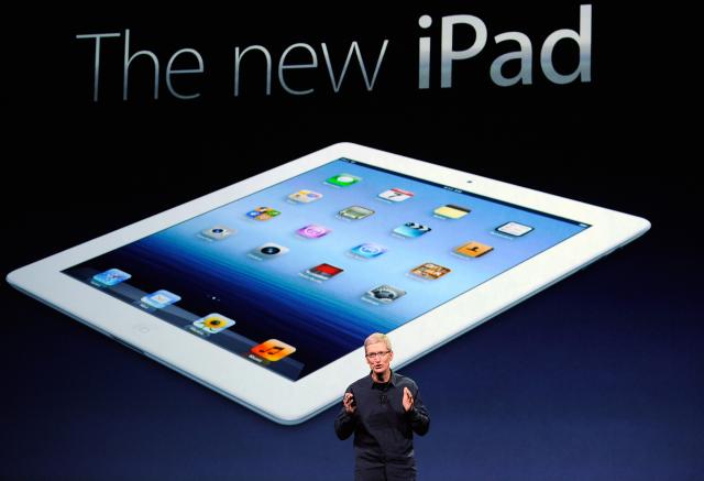 37. Ngày 7/3/ 2012, Tổng giám đốc Tim Cook giới thiệu iPad thế hệ thứ 3 và bản cập nhật của Apple TV. (Kevork Djansezian/Getty Images)