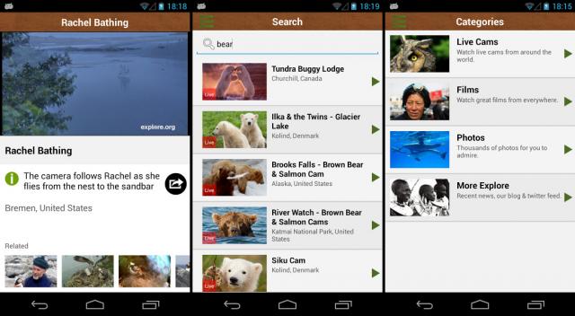 Đây là một ứng dụng dành riêng cho những ai muốn ngắm vẻ đẹp của động vật hoang dã. Với ứng dụng di động của Explore.org, bạn có thể thưởng thức cuộc sống của động vật hoang dã, trong đó có gấu, khỉ, và gấu trúc. Ngoài ra, ứng dụng còn cung cấp hàng chục bộ sưu tập các bức ảnh động vật hoang dã và phim giáo dục về thiên nhiên.