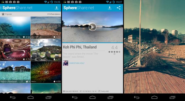 SphereShare là một dịch vụ cho phép mọi người dễ dàng gửi các ảnh toàn cảnh trực tuyến. Sau đó những người khác có thể nhìn thấy chúng trên thiết bị Android hoặc trình duyệt web trên máy tính. Hơn 25 000 hình ảnh toàn cảnh từ khắp nơi trên thế giới đang chờ đợi để được khám phá.