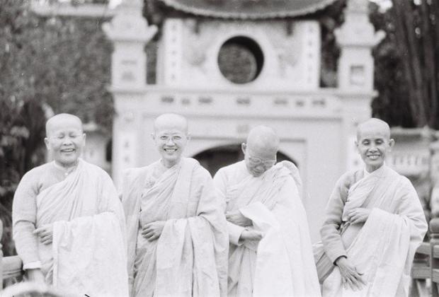 Bốn sư cô tươi cười khi bắt gặp ống kính của nhiếp ảnh gia Lê Vượng.