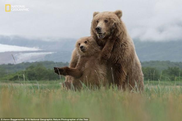 Phút thảnh thơi của mẹ con gấu nâu ở công viên quốc gia Katmai, Alaska, Mỹ. (Ảnh: Aaron Baggenstos).