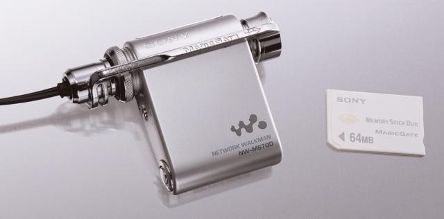 Sony Walkman NW-MS70D: Sony bắt đầu sử dụng bộ nhớ flash những năm đầu năm 2000. Trong ảnh là chiếc Walkman năm 2003 tích hợp bộ nhớ flash 256 MB và các thẻ nhớ mở rộng.
