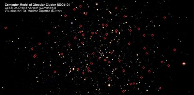 Sử dụng mô phỏng trên máy tính, các nhà nghiên cứu dựng được mô hình những ngôi sao và các hố đen trong cụm sao NGC 6101. Họ mô phỏng suốt thời gian 13 tỷ năm cho thấy sự hình thành và phát triển của cụm, sự ảnh hưởng của các hố đen đến những ngôi sao. Từ đó, họ đã trả lời được những câu hỏi về sự bất thường trong các ngôi sao, giờ chúng ta biết được sự bất thường này được gây ra bởi các hố đen.