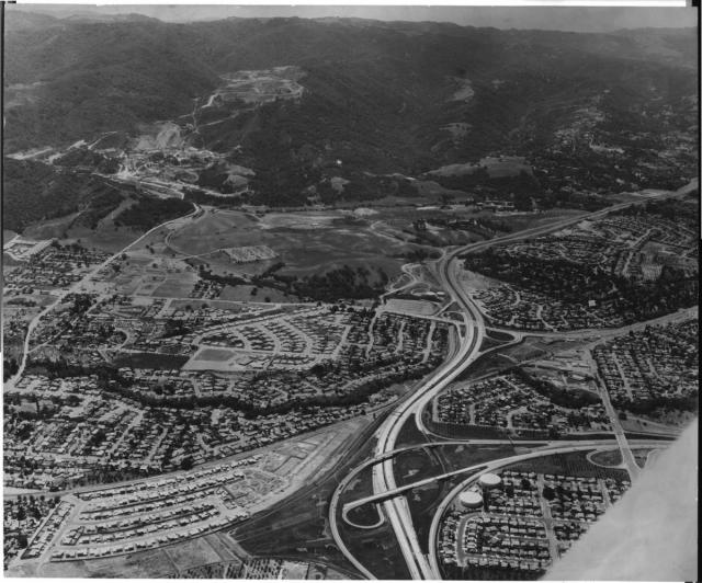 Khi nhìn vào bức ảnh chụp trên cao này, bạn có thấy sự thay đổi mạnh mẽ từ các vườn cây ăn trái của những thập kỷ trước. Tấm ảnh cho thấy đường cao tốc, bãi đậu xe, và sự phát triển ngoại ô bao trùm toàn cảnh của Cupertino.
