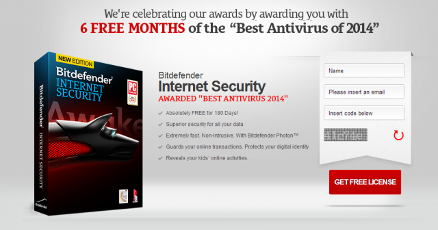 BitDefender đang có chương trình khuyến mãi cung cấp miễn phí bản quyền 6 tháng của phần mềm BitDefender Internet Security 2015, lưu ý key có thể sử dụng để kích hoạt cho bản Bitdefender Internet Security 2014 và Bitdefender Windows 8 Security (phiên bản đặc biệt cho Win8/8.1).