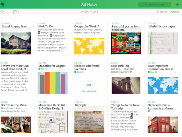 Đối với những người muốn đồng bộ hóa các ghi chú trên tất cả các thiết bị, Evernote là ứng dụng tốt nhất. Bạn có thể quét thẻ kinh doanh, ghim trang web được lưu lại hay các bản ghi âm.