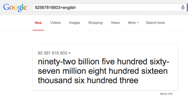 5. Google còn giúp bạn tìm ra cách phát âm mà số có 12 chữ số nếu bạn gõ '= english' ngay sau số đó.