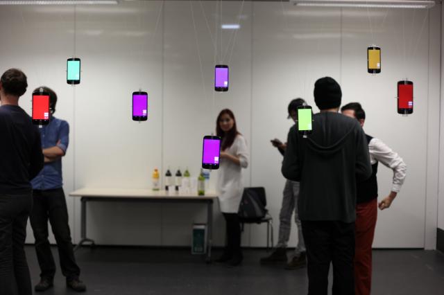 Trong một triển lãm các tác phẩm gần đây của mình, Hernan cũng treo các điện thoại thông minh chạy một ứng dụng hiển thị màu sắc dựa trên sức mạnh của tín hiệu Wi-Fi xung quanh.
