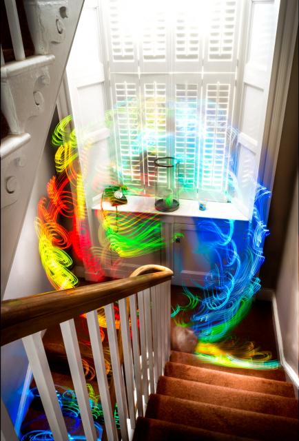 Sau đó, Hernan đã sử dụng nghệ thuật chụp ảnh phơi sáng để chụp những hình ảnh ma quái của các tín hiệu Wi-Fi đầy màu sắc.