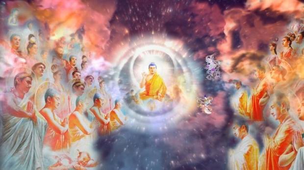 Vô số sinh mệnh cao cấp xuất hiện, họ như ngưng tụ trên không, có vị chân xếp bằng ngồi trên tòa sen, ánh hào quang lấp lánh; có vị ngồi trên tiên hạc đang bay lượn, ánh hào quang tỏa ra bốn phía, còn có rất nhiều sinh mệnh cao cấp khác, đứng đầy trong không trung, dường như không cần đến bất cứ công cụ gì, họ cứ lơ lửng mãi. Điều kỳ lạ chính là hình tượng của họ khá giống với hình tượng con người.