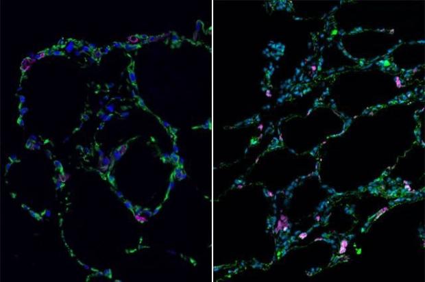 Mặc dù các nhà khoa học chưa xây dựng được một lá phổi đầy đủ chức năng. Nhưng họ có thể lấy các tế bào phổi và đặt chúng trong khoảng cách hình học chính xác và mô hình để bắt chước phổi người, để nghiên cứu các bệnh như xơ phổi vô căn. Xơ phổi vô căn là một bệnh phổi mãn tính đặc trưng bởi sẹo (xơ hóa) ở phổi. Các sẹo làm cho phổi dày và cứng, người bênh càng ngày khó thở, thiếu oxy lên não và các cơ quan quan trọng. Sau khi chẩn đoán, hầu hết những người bị bệnh sống khoảng 3 – 5 năm. Xơ phổi vô căn có thể do nhiễm virus, một tỷ lệ phần trăm nhỏ do di truyền, hút thuốc lá và tiếp xúc một số loại bụi có thể làm tăng nguy cơ phát triển bệnh...