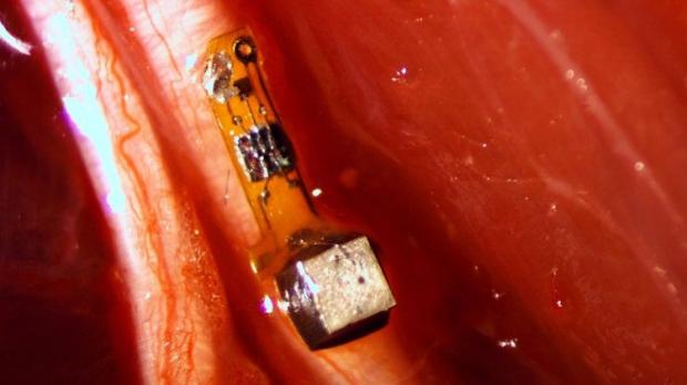 Đây là những cảm biến có kích thước bằng một hạt cát cỡ lớn chứa một tinh thể vật liệu áp điện có thể chuyển đổi những rung động siêu âm từ bên ngoài cơ thể thành điện để vận hành một bóng bán dẫn siêu nhỏ - thành phần tiếp xúc với dây thần kinh hay sợi cơ. Một sự tăng vọt về điện áp trong sợi cơ hay sợi thần kinh sẽ làm thay đổi mạch và làm rung động tinh thể áp điện, từ đó làm thay đổi âm thanh vọng lại được phát hiện bởi một đầu thu siêu âm - thường tích hợp trên cùng một thiết bị tạo ra rung động. Sự thay đổi nhỏ này được gọi là tán xạ ngược, cho phép thiết bị xác định điện áp.