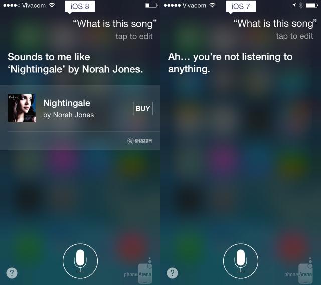 Siri đã có khả năng nhận dạng bài hát trong iOS 8, nhờ tích hợp Shazam.