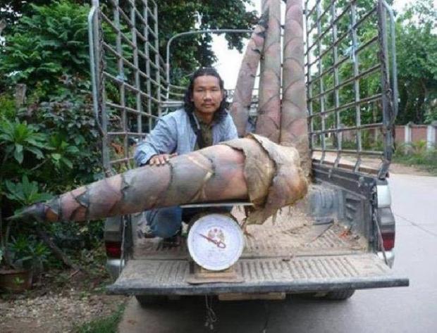 Không những thế, những khóm măng tươi cũng to không kém và còn bán rất được giá, khoảng 50 baht (tương đương 32.000 đồng) mỗi kilogram. Nếu không bạn có thể chờ tre lớn từ 3-5 năm rồi dùng chùng để đóng tủ.