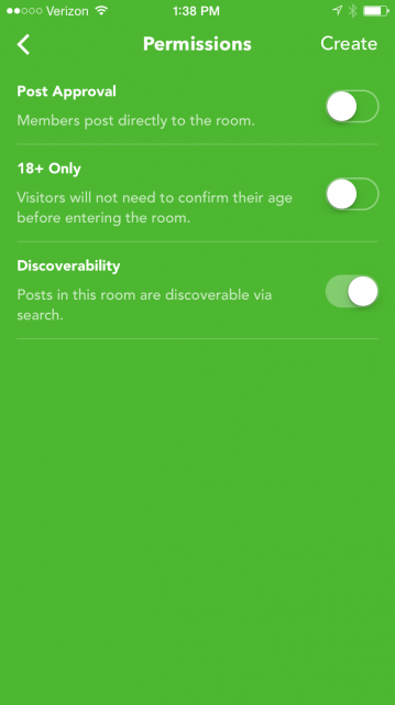 Một khi bạn dùng ứng dụng bạn có thể tạo ra các phòng thảo luận dành riêng cho bất kỳ chủ đề mà bạn muốn cho dù đó là về việc chia sẻ hình ảnh về các món ăn đã nấu. Những người dùng các phòng này sẽ có thể giao tiếp với nhau bằng hình ảnh, video và văn bản.