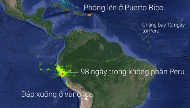 Lộ trình đường bay của khinh khí cầu.