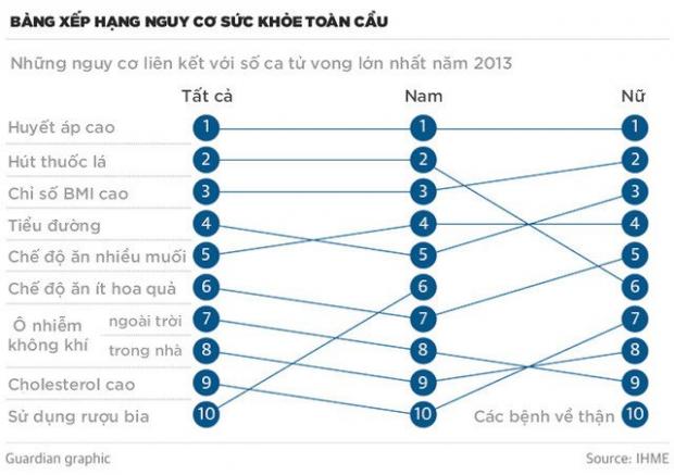 Được công bố trên tạp chí Lancet, nghiên cứu đã thu thập dữ liệu từ những năm 1990 đến năm 2013 của 188 quốc gia. Dữ liệu này bao gồm hơn một nửa số ca tử vong xảy ra trên toàn cầu và một phần ba những trường hợp sức khỏe yếu kém, có liên quan đến những yếu tố nguy cơ có thể phòng ngừa.