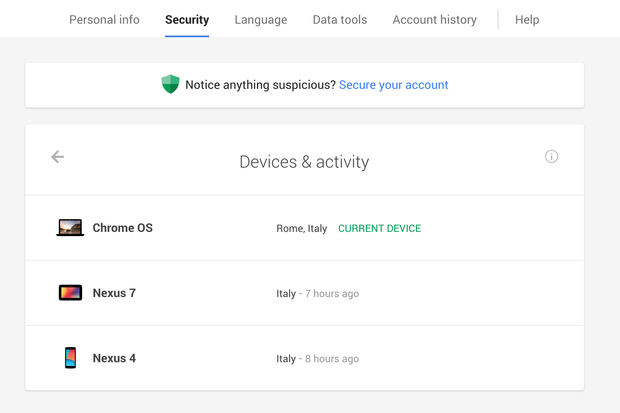 Bảng điều khiển Thiết bị và Hoạt động mới của Google sẽ hiển thị các thiết bị hiện đang đăng nhập hoặc đã hoạt động trên tài khoản của người dùng trong 28 ngày qua.