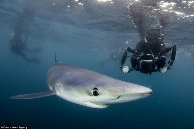Loài cá mập ăn thịt này bị phát hiện đang bơi ở bờ biển Penzance nổi tiếng. Cá mập xanh sống ở Đại Tây Dương nhưng vẫn có một số con đi vào vùng biển nước Anh để săn cá thu.