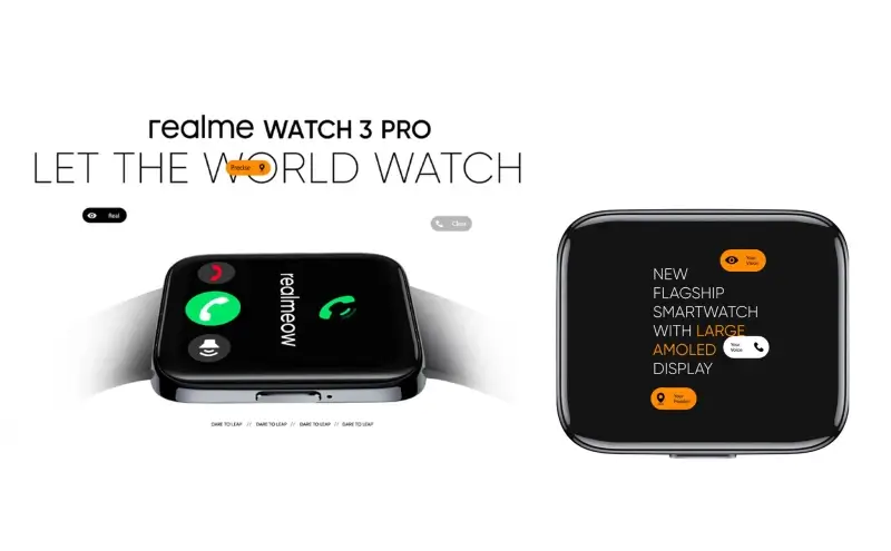 Realme đã công bố ra mắt Watch 3 Pro, có màn hình AMOLED lớn. Sản phẩm sắp ra mắt được nhìn thấy với thân kim loại và nút vật lý ở cạnh phải. Ngoài ra còn có một phần lỗ đục nhỏ, nhiều khả năng là nơi chứa micrô. Tuy nhiên, màn hình này là bản nâng cấp trên Realme Watch 2 Pro, có màn hình LCD 1,75 inch. Realme tuyên bố trên trang chủ của mình là khi sản phẩm ra mắt thì cả thế giới sẽ được theo dõi, thế nhưng nó có thể sẽ chỉ ra mắt ở Ấn Độ.