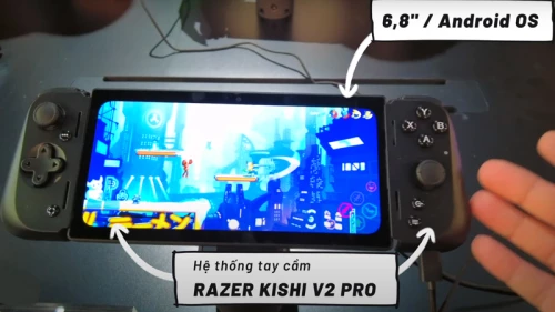 Gamepad của Razer Edge khá tương đồng với Kishi V2, tuy nhiên vẫn có những mặt khác biệt mà người dùng có thể dễ dàng nhận thấy. Về mặt kỹ thuật, bộ điều khiển đi kèm của Edge, có tên gọi là Kishi V2 Pro, các nút bấm và trình kích hoạt của đàn anh thế hệ mới giống hệt phiên bản trước. Edge được bổ sung giắc cắm âm thanh 3.5mm, điều này cực kì quan trọng vì cổng kết nốt của Edge là USB-C. Hãng cũng thông báo rằng Edge sẽ có khay thẻ nhớ micro SD, điều này được người dùng rất đón nhận bởi người dùng sẽ không còn bị giới hạn về trò chơi.