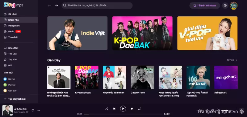 Bước 1: Truy cập vào trang web Zing MP3 tại https://zingmp3.vn/