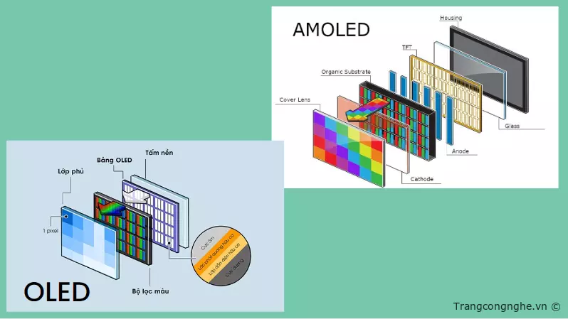 Về cơ bản, màn hình AMOLED là một nhánh con của màn hình OLED. Vì vậy, AMOLED sẽ có những cải tiến khắc phục khuyết điểm trên OLED và giá thành lại rẻ hơn.